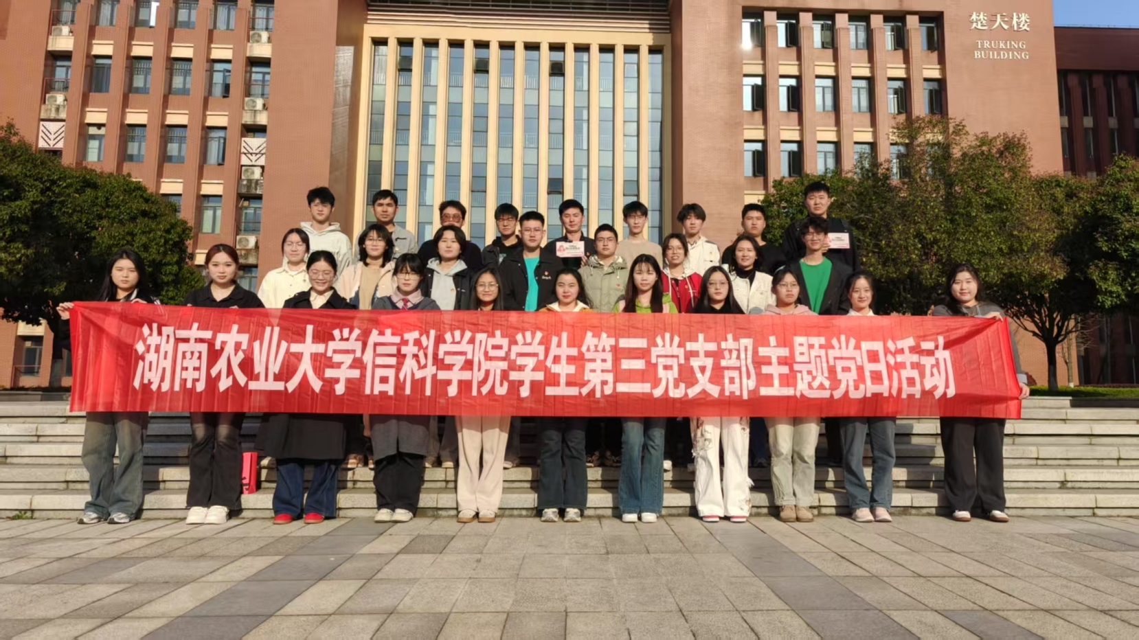本网讯(学生第三党支部 陆玉婷 陈慧菲 叶卿珊)三月春风拂湘农,雷锋精神代代传。为纪念雷锋同志、鼓励湘农学子践行雷锋精神,3月20日,日韩无码一区二区三区学生第三党支部以“红韵拾光——街头寻访雷锋记忆”为主题,在校园内开展了一场别开生面的特色主题党日活动。