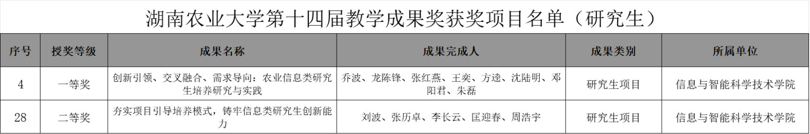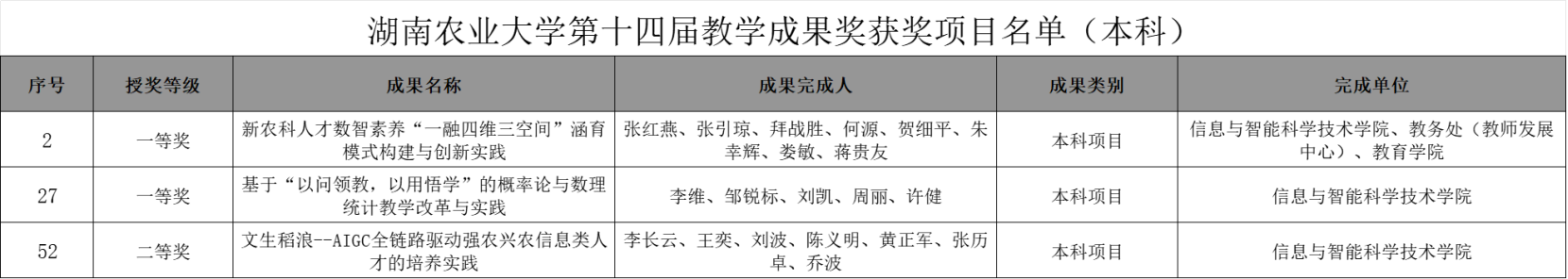 信科学院获湖南农业大学第十四届教学成果奖五项